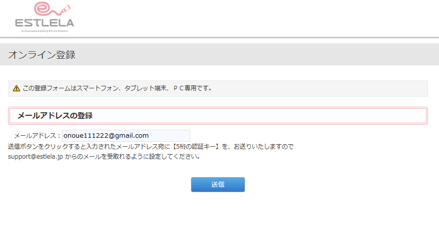 コピーしたURLよりログインし、登録に進む。