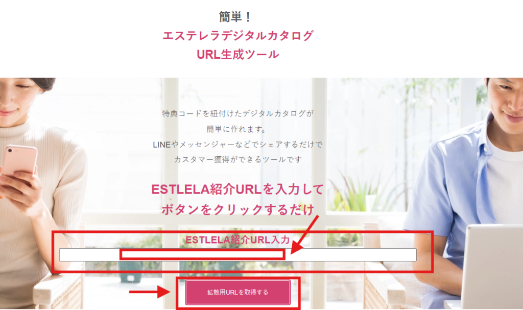 先程コピーしたメンバー紹介用URLを貼り付けて拡散用URLを取得するをクリックしてね!