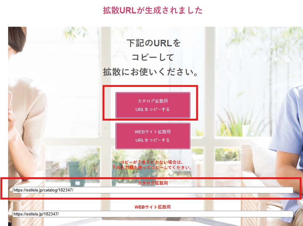カタログ拡散用URLをコピーするをクリックして、メモ帳アプリやLINEに貼り付けましょう!これで知り合いや、LINEとかで渡すことが出来ます!ここより商品を購入されるとあなたの報酬になります。ワクワク!