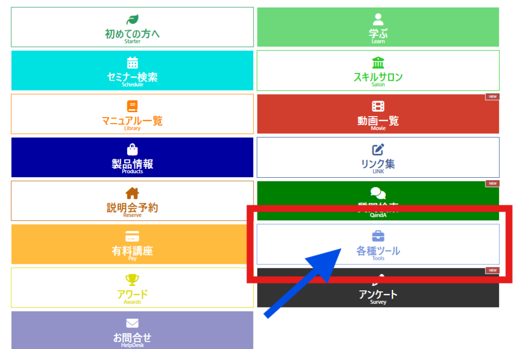 次にWealmaxコンテンツ内の各種ツールを開きましょう