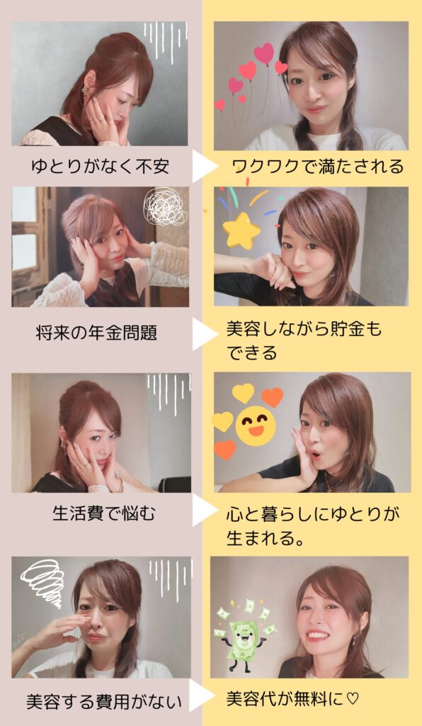 美容代や生活費の不安から解放され、本当に欲しいものを手に入れられるようになります。